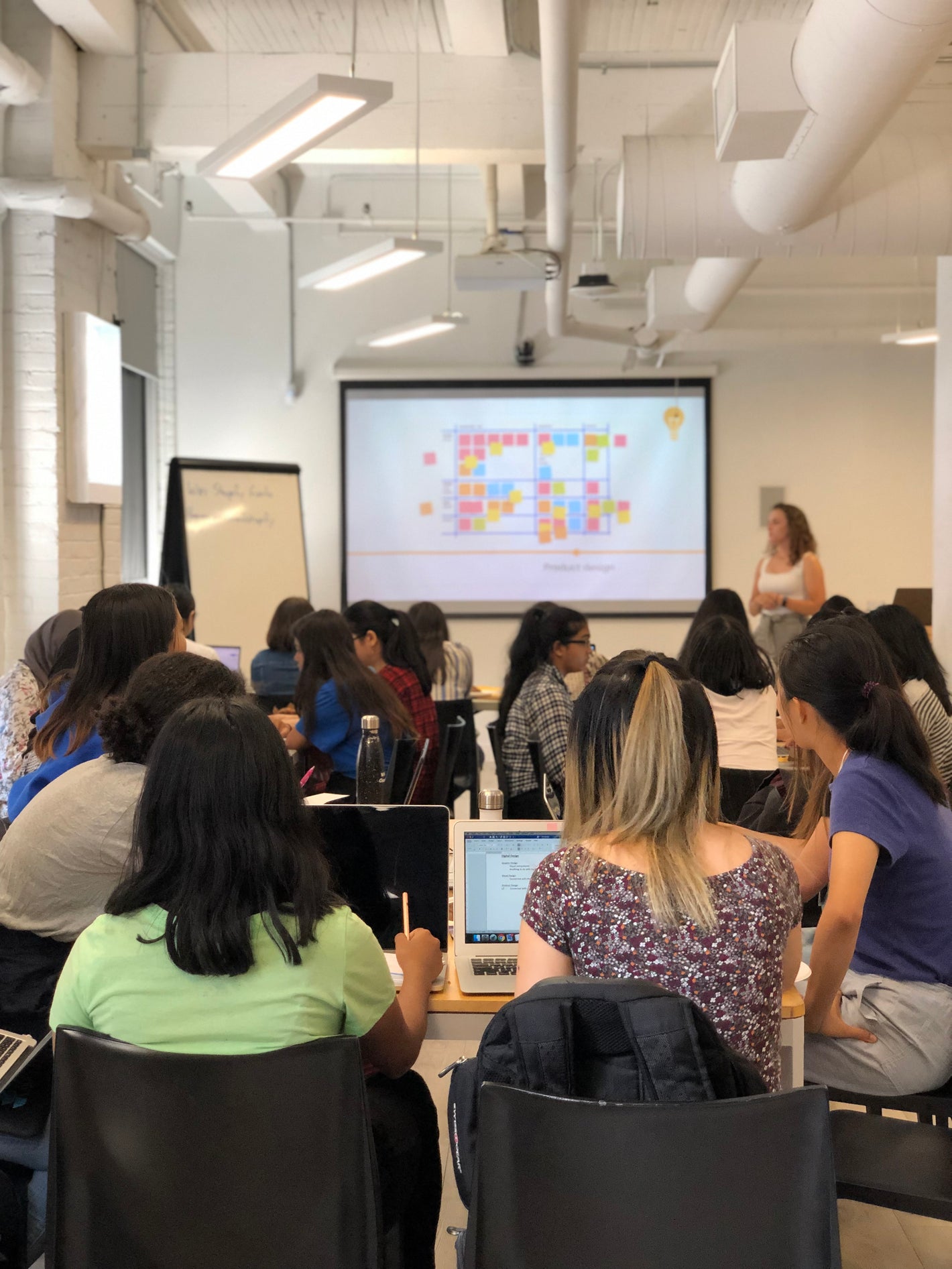 Merchants provide technical and business challenges for girls to tackle. Client relations, business development, and pitching their ideas are all skills that girls develop by the end of the program.